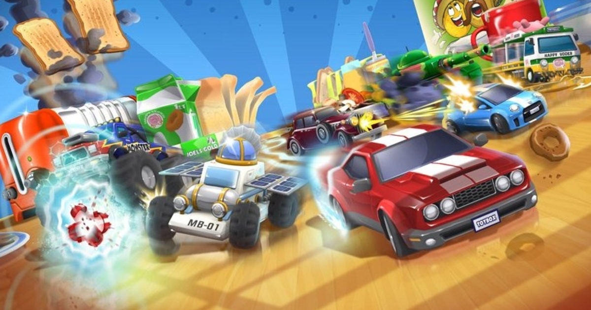 It’s time for a slice of retro arcade racing with Toybox Turbos! Bursting with multiplayer fun to share with your friends and family, Toybox Turbos takes you to kitchen tables, pool halls and science labs in this manic, miniaturised table top racer!
